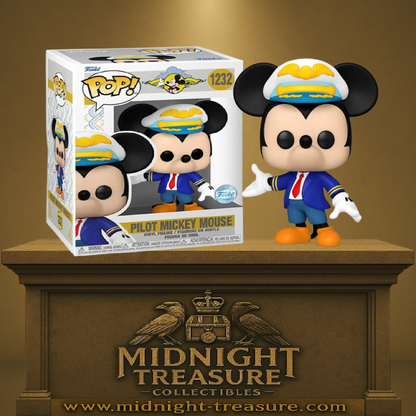 Cette Pop! représente Mickey vêtu d’un uniforme de pilote bleu et or, avec sa casquette ornée d’ailes dorées, ses gants blancs iconiques. Les détails sont précis et fidèles à l’univers de Disney Parks. Le sticker "Special Edition" vient confirmer le caractère exclusif de cette pièce.