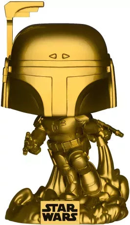 Cette Funko Pop! N°285 représente Jango Fett en version Gold Chrome, entièrement dorée de la tête aux pieds. Il se tient prêt à dégainer ses blasters, fièrement campé sur une base marquée "Star Wars". Le rendu métallisé est saisissant, offrant un effet premium à cette édition spéciale. 💫